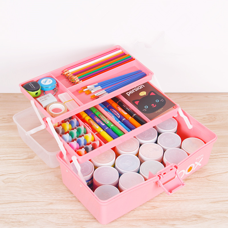 Portable fine art toolbox Large three-layer plastic elementary school children calligraphers with containing children oil painting medicine box