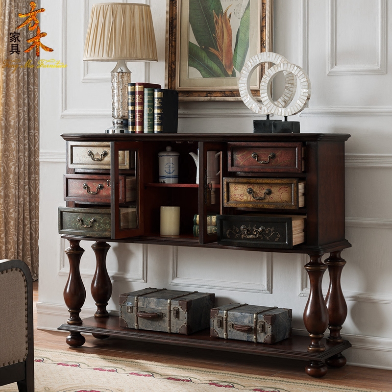 European - style meal cabinet solid wooden American rural end terminal retro - edge table porch table 1 5 m furniture