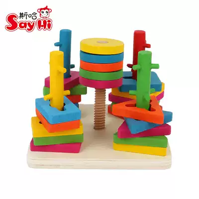 Montesse children's early childhood education Enlightenment educational set column toy wooden five-pillar set building block shape matching cognition