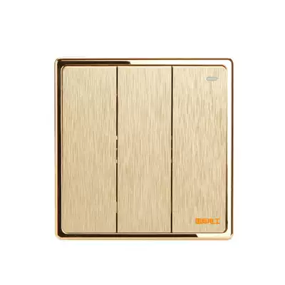 Type 86 Wall household three-open double cut 3-digit double light switch Big Board champagne gold switch socket panel