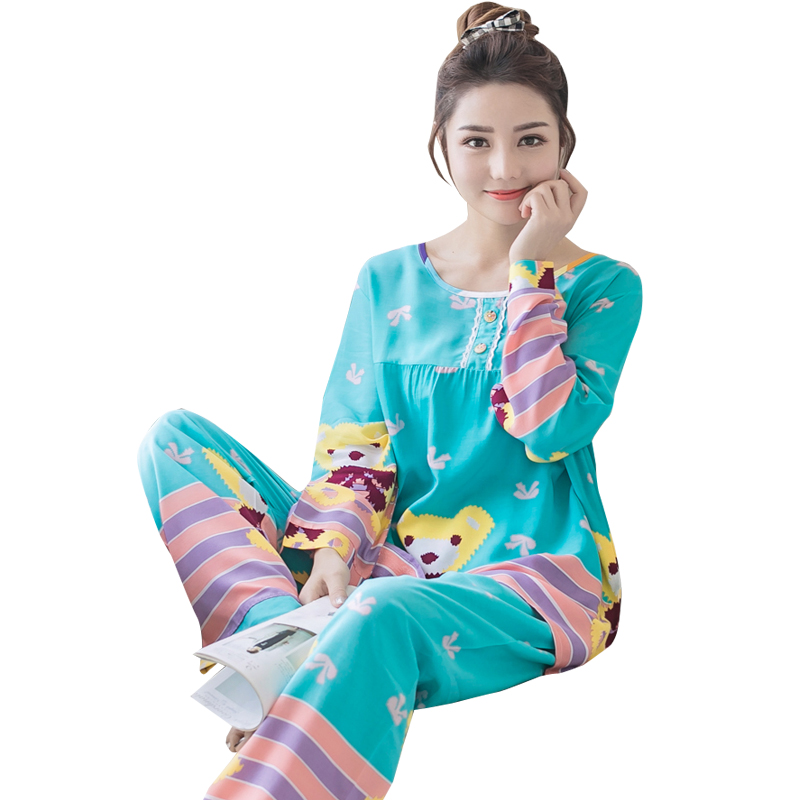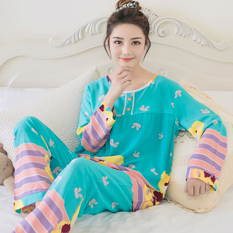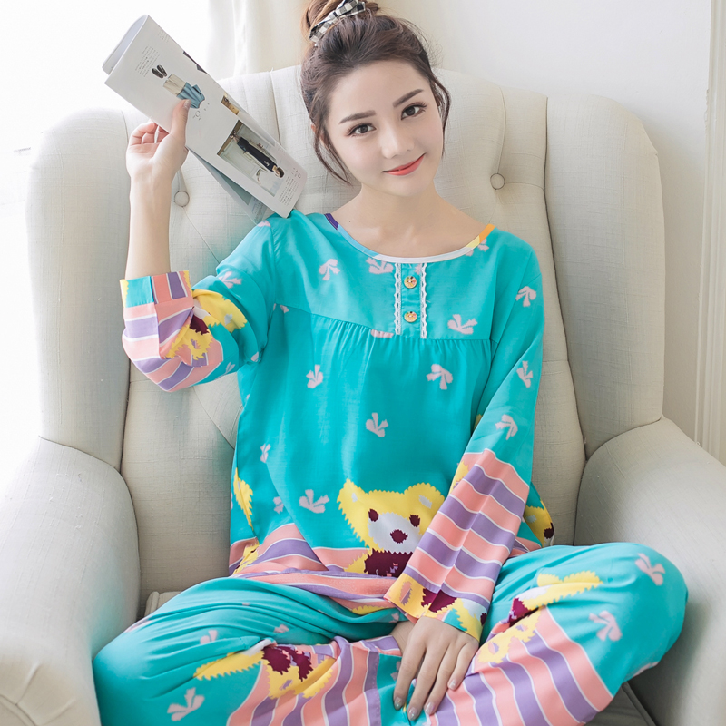 Pajamas women's long-sleeved summer cotton silk suit thin spring and autumn Korean version of leisure pullover large size artificial cotton home clothes