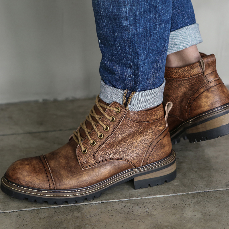 Original new products handmade by old retro genuine leather outdoor tooling boots Goodyear trends Martin boots European and American short boots