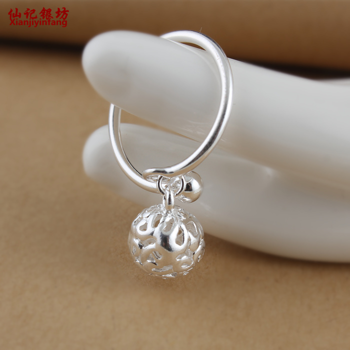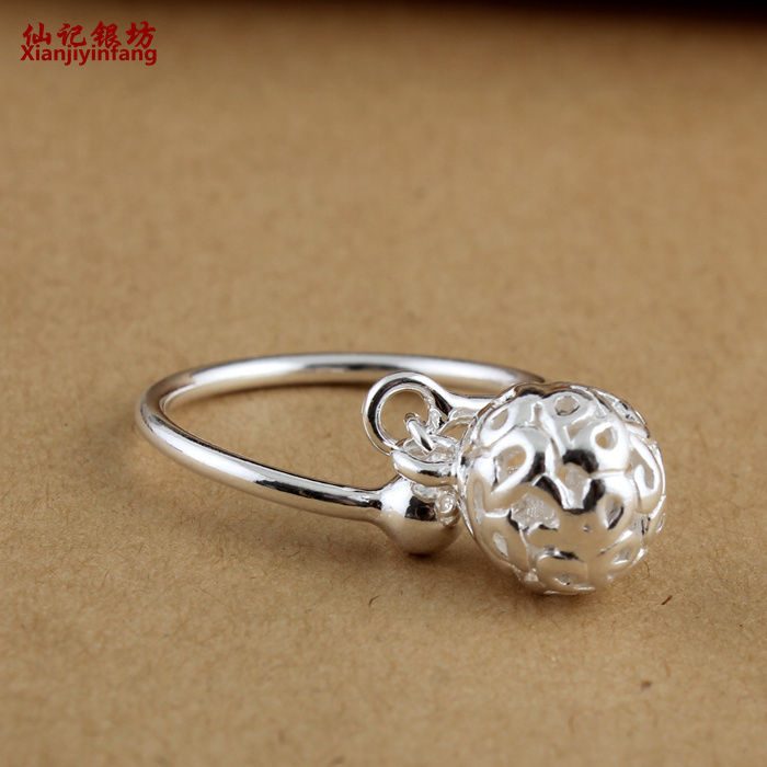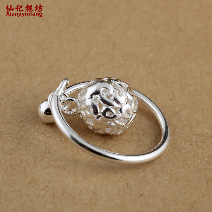 Pure silver 999 sterling silver ring female fine food ring bell hollow ball personality creative tail ring for friends