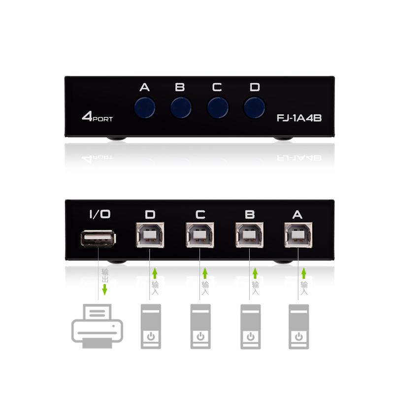 USB print share switcher USB4 port switching 4 in 1 out switching print 4 computers sharing U pan print