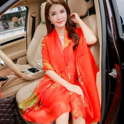 Silk scarf women's spring and autumn summer sunscreen Joker foreign style fashion seaside beach towel shawl dual-use scarf long scarf
