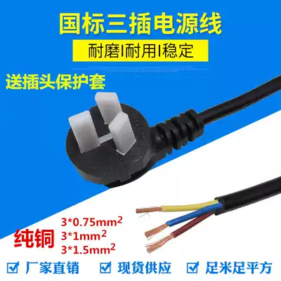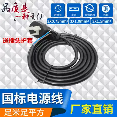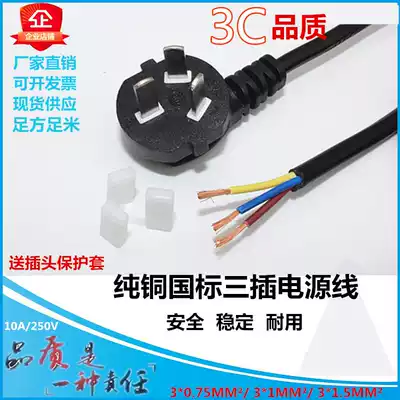 Pure copper national standard power cord three-hole 3-core 0 75 square 1 5 3 meters three-core plug line three power cable