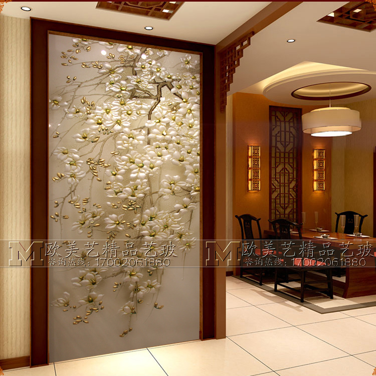Transparent frosted transparent carving process tempered art glass porch decoration background screen partition Yushu Linfeng