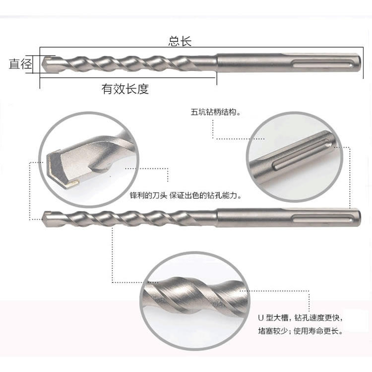 Five pit SDS-MAX electric hammer drill bit 60 cm lengthened hibiscus Cemented Carbide Impact Drill 14-45 * 600mm