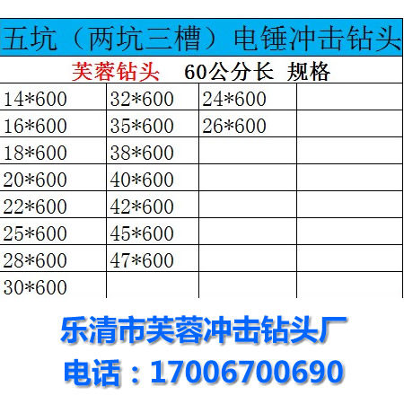 Five Pits 12 * 600mm Five pits 14 * 600mm Five pits 16 * 600mm Five pits 18 * 600mm 600mm Five pits 20 22 * 600mm Five pits 22 * 600mm