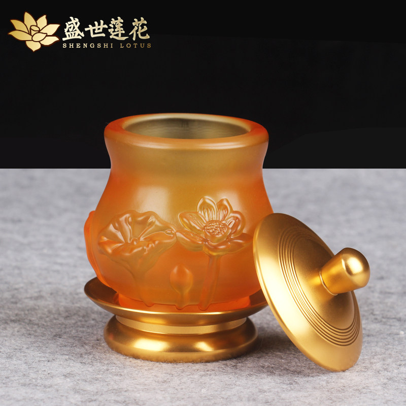 Hardcover alloy glass Glass Holy Water cup Lotus offering cup Offering Buddha Cup Buddha Hall Temple Buddha front water supply Cup