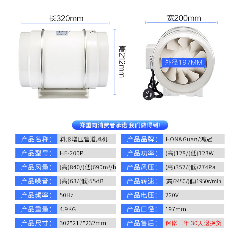 Hon Crowns Powerful Ventilation Duct Ventilator 8 Inch Kitchen Round Exhaust Fan Bedroom Dressing Room Ventilator 200P