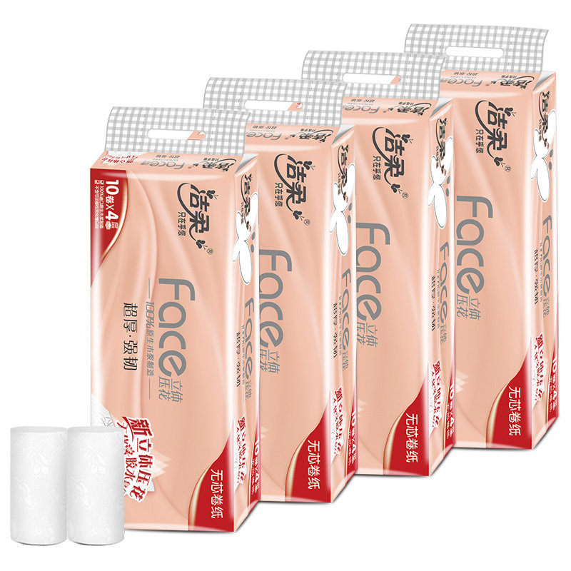 Jie soft roll paper coreless toilet paper 4D three-dimensional embossed paper towel 70g 4 layers 40 rolls family full box