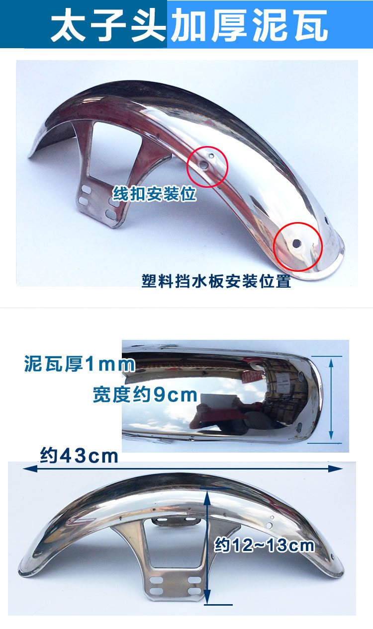 Gold Pen Electric Tricycle Accessories Stainless Steel Front Wheel Mud Tile Electric Tricycle Front Fender Thickened Water Retaining Plate