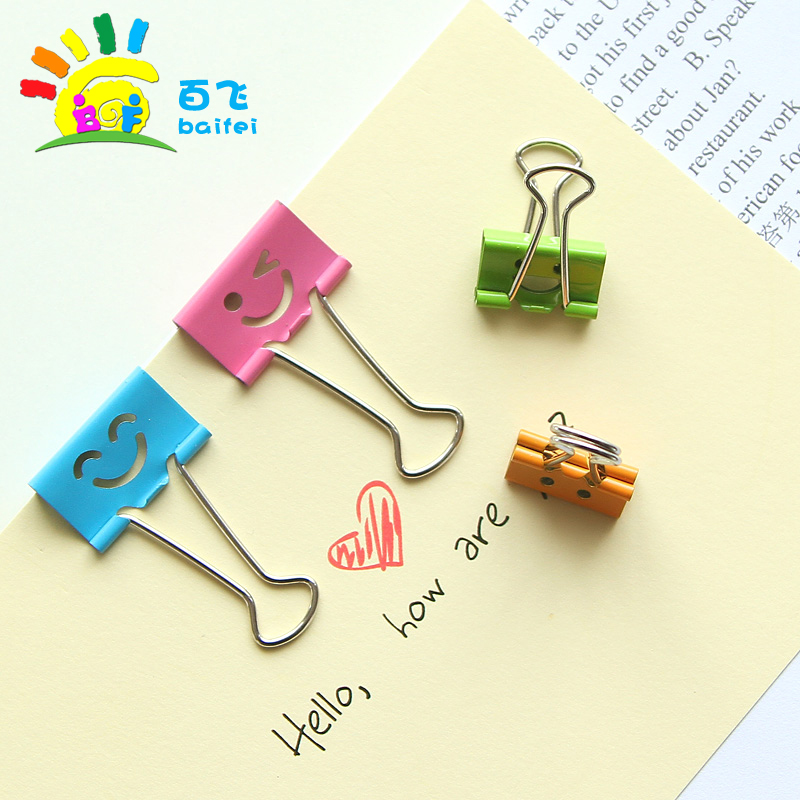 Smile color long tail clip folder dovetail clip iron ticket clip large and small office stationery