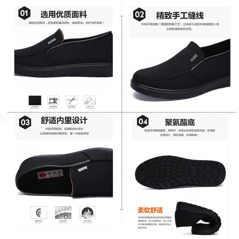 Old Beijing Cloth Shoes Men's Single Shoes Spring Autumn Season Soft Bottom Middle Aged People Business Casual Cloth Shoes Black Big Size Dad Shoes