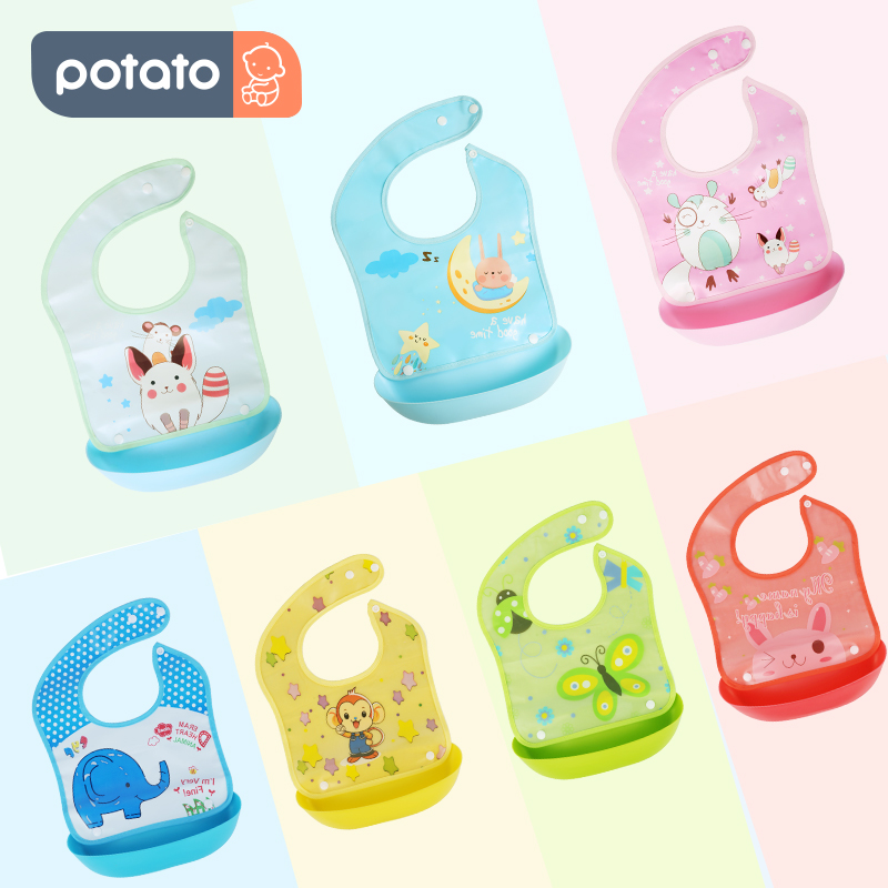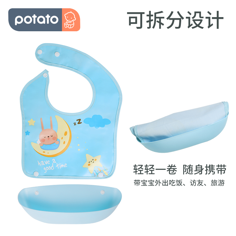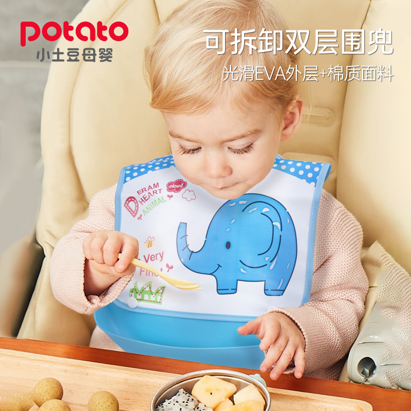 Small potato baby detachable bib feeding rice bag waterproof bib children three-dimensional disposable leak-proof double bib