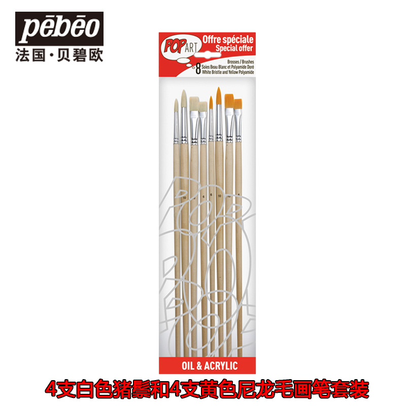 Bebeeu Watercolor Powder acrylic painting brush flat head nylon pig swine 8 mixed painting pen set