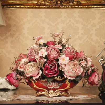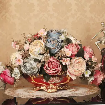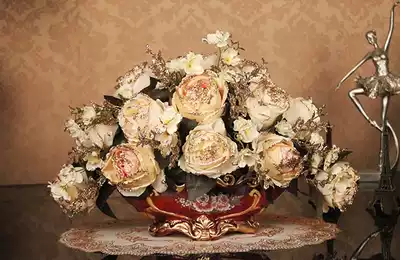 European-style simulation flower set Living room flower fake flower decoration flower peony dining table entrance flower American silk pattern board room flower
