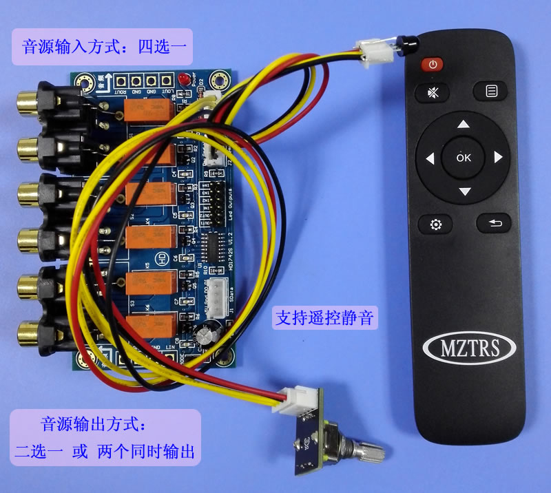 MZTRS four-way input two-way output sound source select remote control sound source selection board encoder sound source selection
