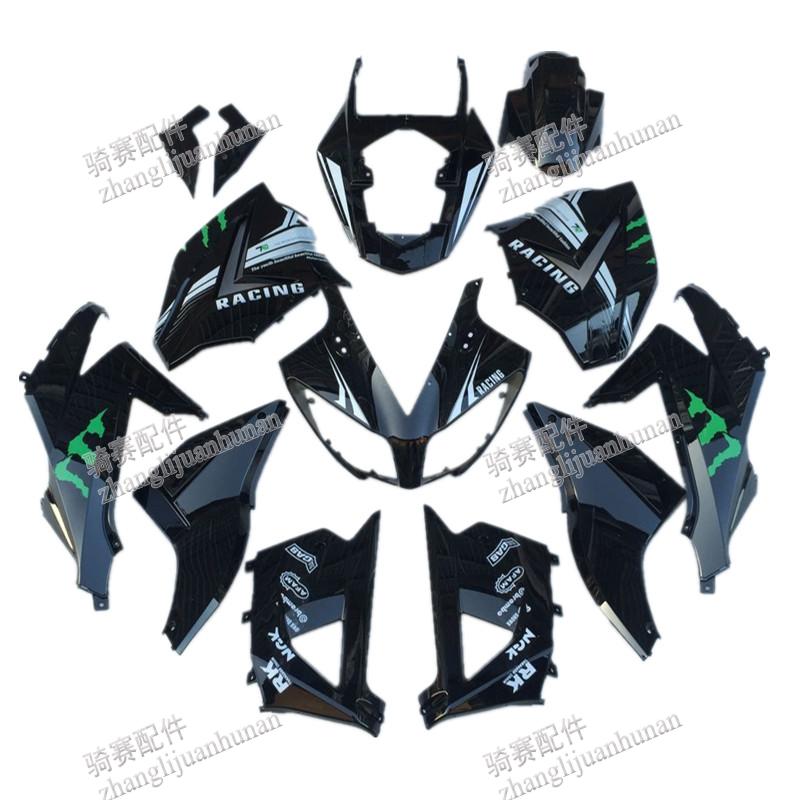 Head cover One front board One large plate one pair of lower diversion cover pair of middle protection plate pair of rear tail plate pair of loft decoration piece pair of oil tank One windshield head hood cover mesh bottom guard net rear fender bender headlights