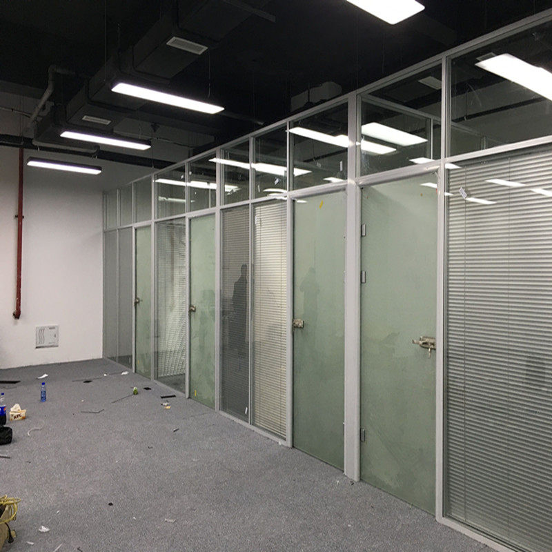 Office Furniture Tempered Glass Partition Wall With Shutter Screen Aluminum Alloy Office High Partition Partition Wall Factory Partition Wall