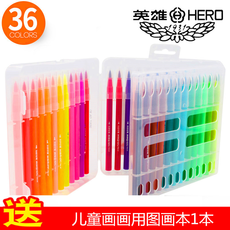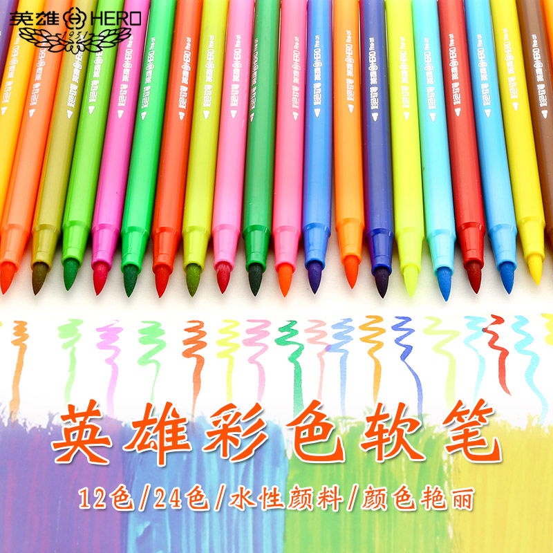 Hero Soft-head Watercolor Pen 24 Color Elementary Students With 36 Color Children Kindergarten 48 Color Suit Paintbrush Safety Watercolor Pen Suit Children Kindergarten Soft Heads Drawing Pen Elementary School Students With Drawing Pen