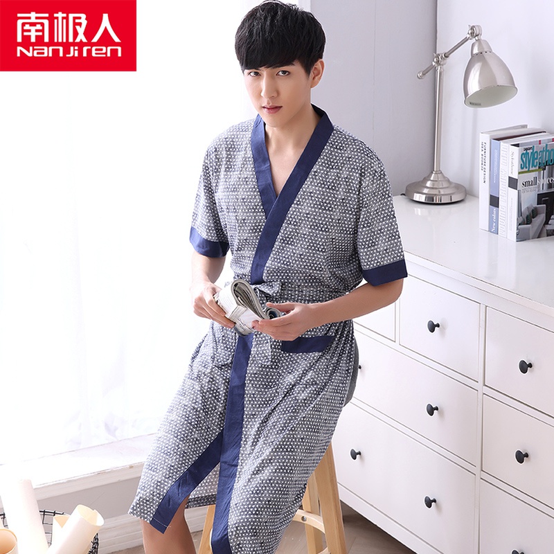 Summer nightgown Men's short-sleeved cotton extended bathrobe pajamas fat plus size cotton home wear Japanese