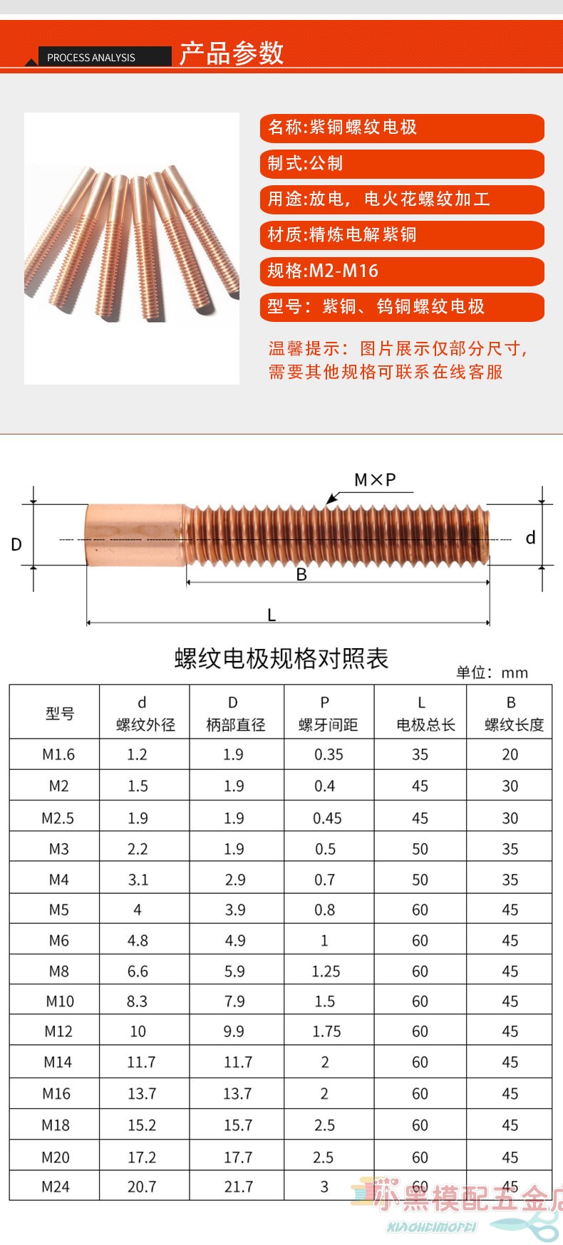 Public made red copper threaded electrode rocking tooth M1 2M2M2 5M3M4M5M6M7M8-M24 5M3M4M5M6M7M8-M24 electrode-Taobao