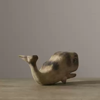 Calle imported European-style American home decorations Creative gifts old handmade log carving blue whale ornaments