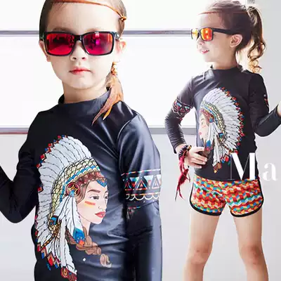 Children and girls, children, long sleeves, two-piece shorts, student sun-drying diving suits, hot spring long-sleeved trousers swimsuit