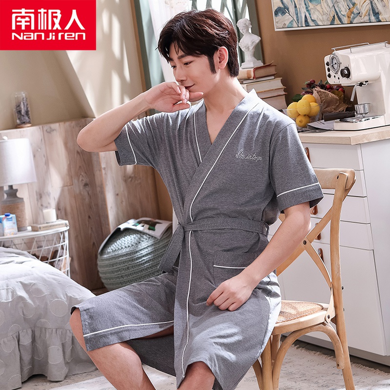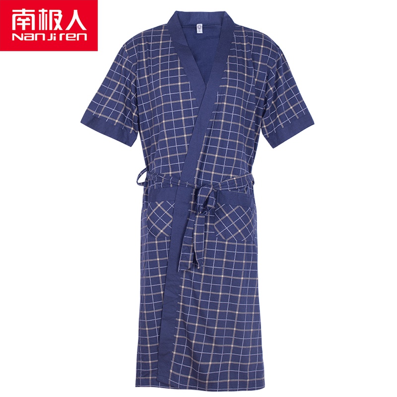 Youth men's nightgown summer short-sleeved medium-long version of the yukata Summer half-sleeve thin cotton cloth large size loose bathrobe