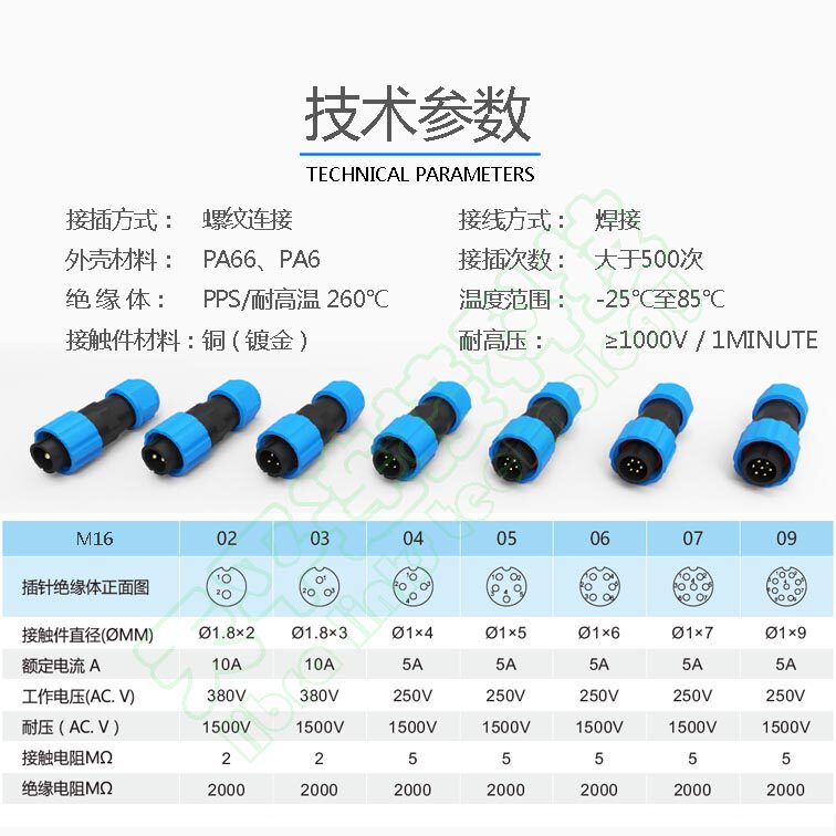 M16 docking plastic waterproof aviation plug outdoor IP68 connector male and female 5-10A terminal 2-4-79 core