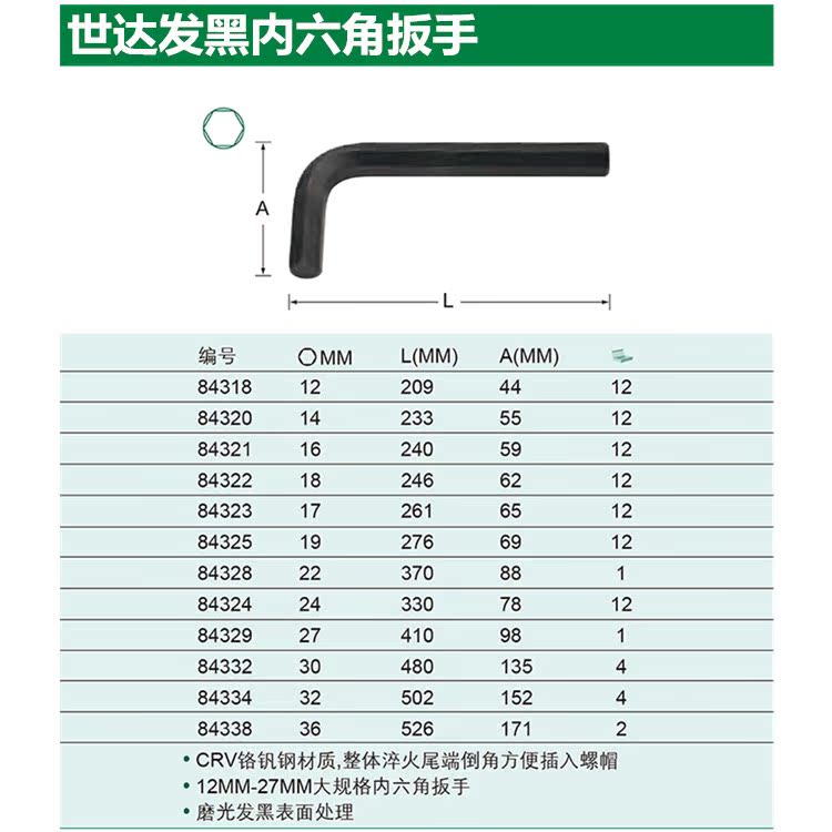 Seda lengthened flat head inner hexagon wrench hair inner hexagon wrench 81304 84318