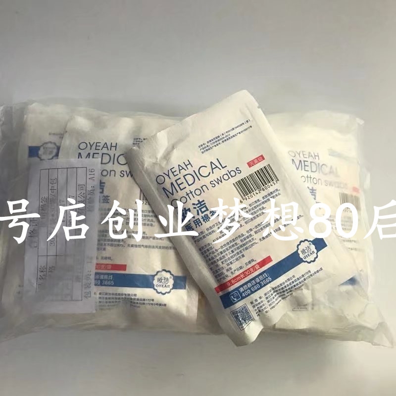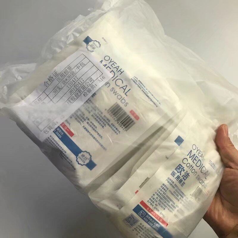Oujie medical disposable sterile cotton swab 30 * 30 bags single head wooden stick sterilization and degreasing cotton swab