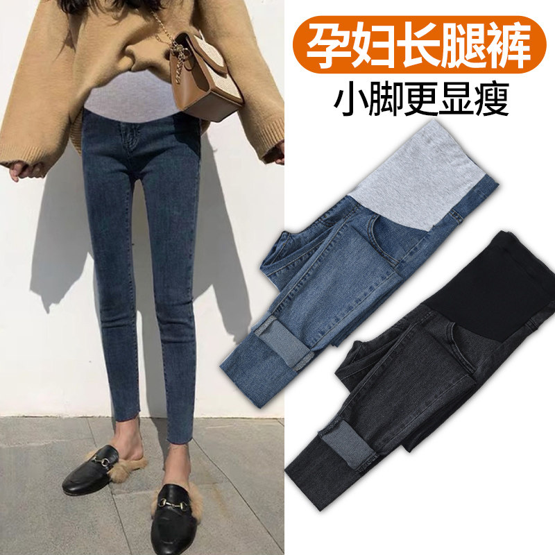 Pregnant woman pants spring and autumn outside wearing denim smoke pipe pants small sub 90% thin section of spring dress black 2021 new female