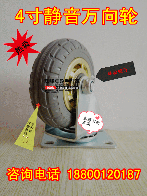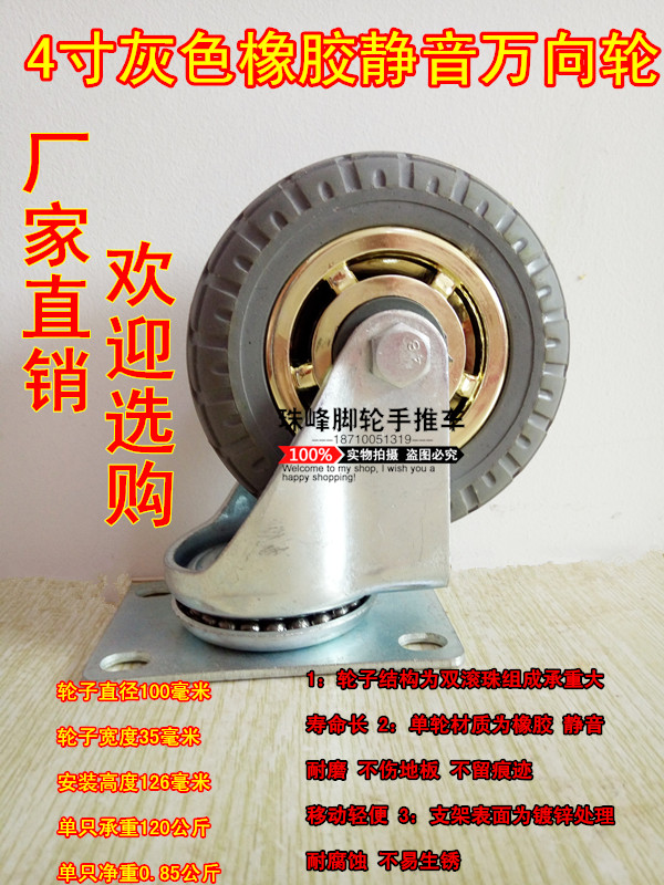 Double-axis bearing rubber wheels 4-inch push wheels Wheels Silent Wear Wheels Universal Castors 100mm Wheels Elastic Wheels