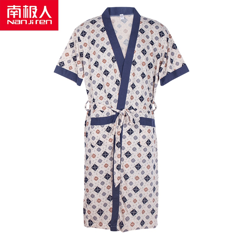 Men's sleeping robes pure cotton Summer short sleeves Long version of thin-style bath robe for overweight middle-aged full cotton semi-sleeve pyjamas
