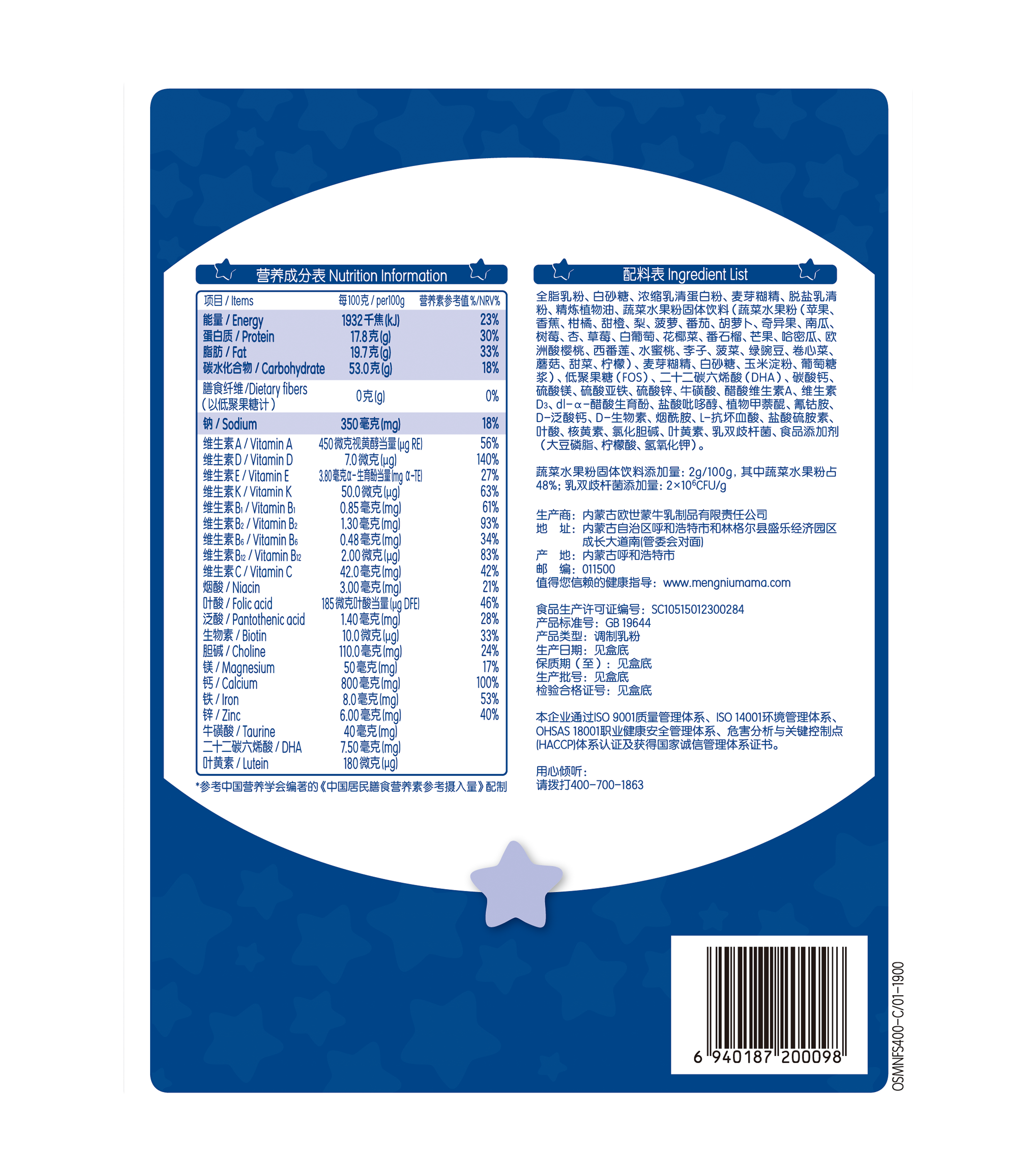 Mengniu Future Stars Child Growth Formula Milk Powder 400g * 2 boxes Student Yisheng Yuan Nutritional Milk Powder
