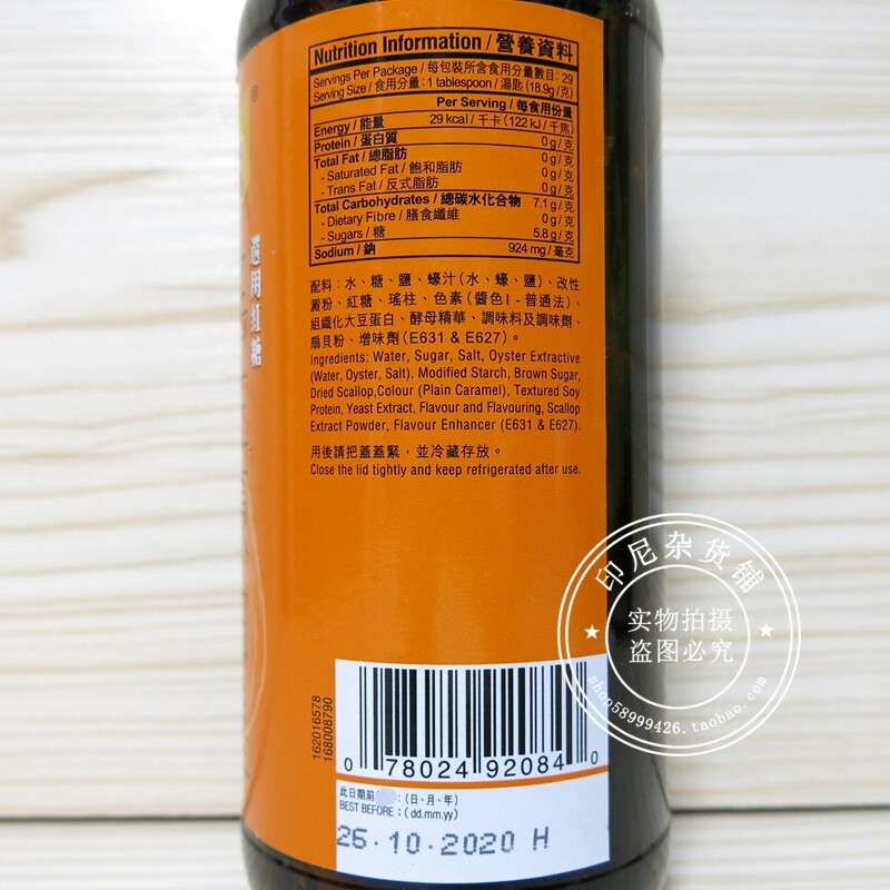 Hong Kong and Macau Shopping Hong Kong AMOY Amoy Scallop Oyster Sauce Scallop Oyster Sauce King Instant Cooking Sauce 555ml
