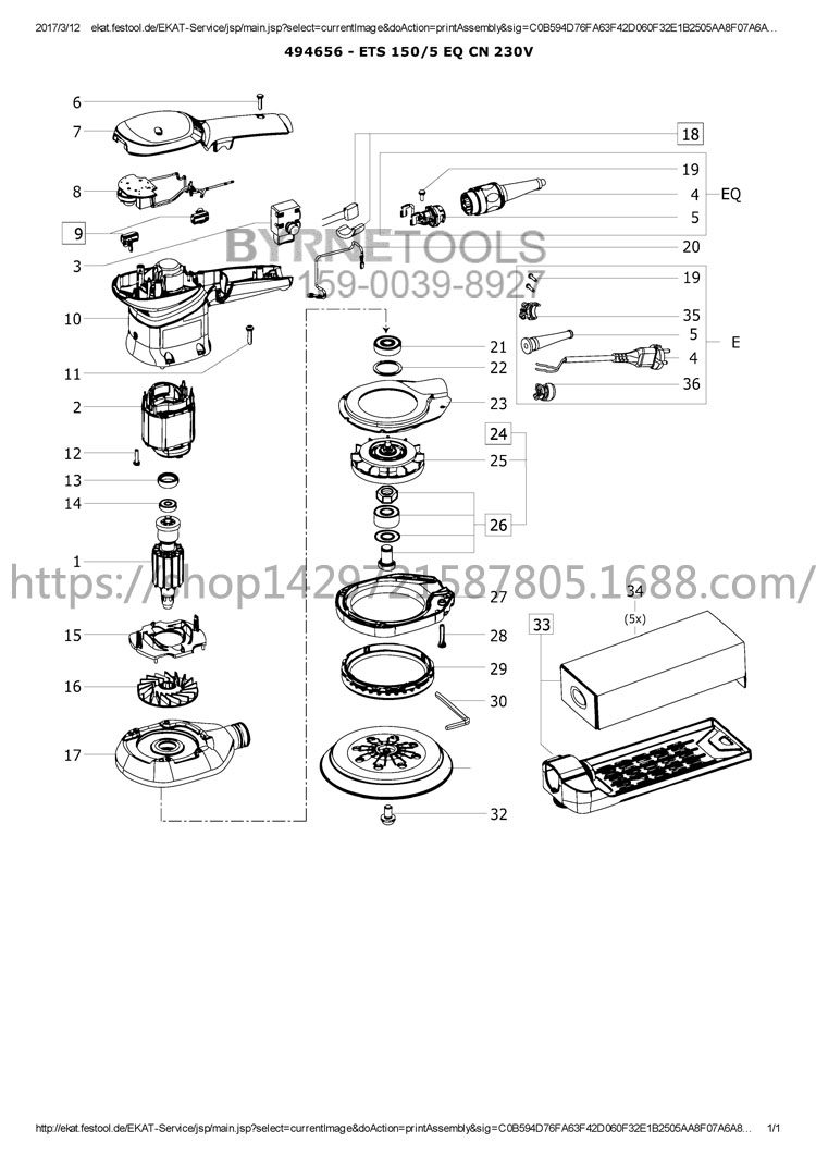 FESTOOL FESTOOL FETS150 5EQ ETS150 3EQ dry grinder original attachment