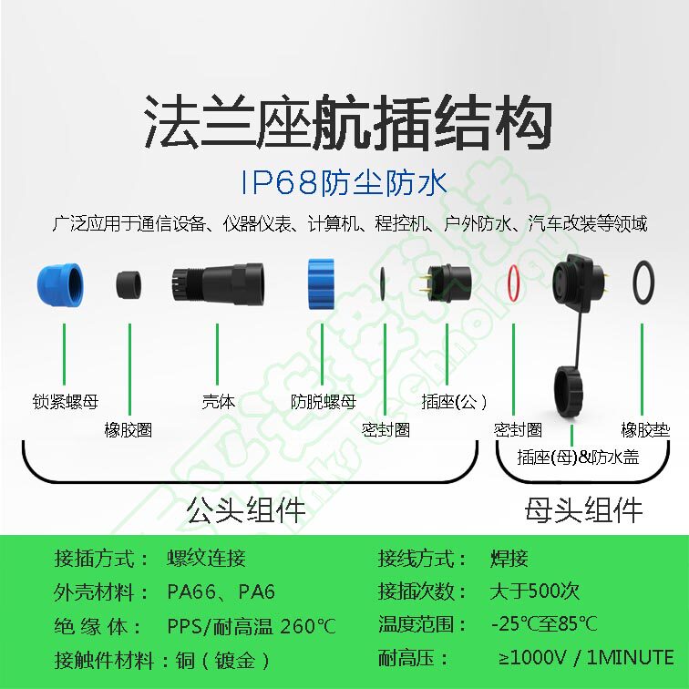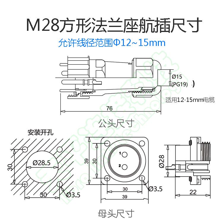 M28 multi-core waterproof connector with flange aviation plug 3579-12-16-19-24-26 core IP68 connector