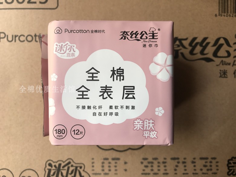 6 Packs All-cotton Era Naise Princess Mini Sanitary Cotton Pad Natural Cotton Ultra Slim Light Ride 180mm