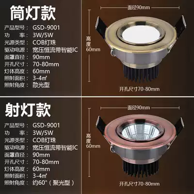 European-style spotlight LED ceiling light Chinese living room COB bullseye light Embedded drilling 7 5 Retro American downlight
