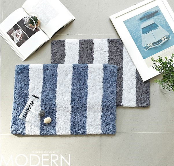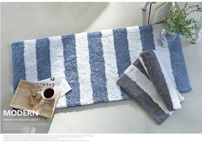 Ground mat pure cotton bathroom full cotton water suction machine washable striped kitchen footbed Korean style can let go and wash South Korea