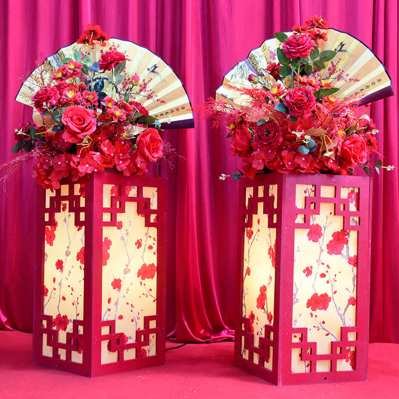 Dark Red Road Citation Fan embroidered ball Flower dark red road leading fan Concealed Red Road Leading with lamp Enlarged Road Citation Fan Upgrade Flower Splitting section