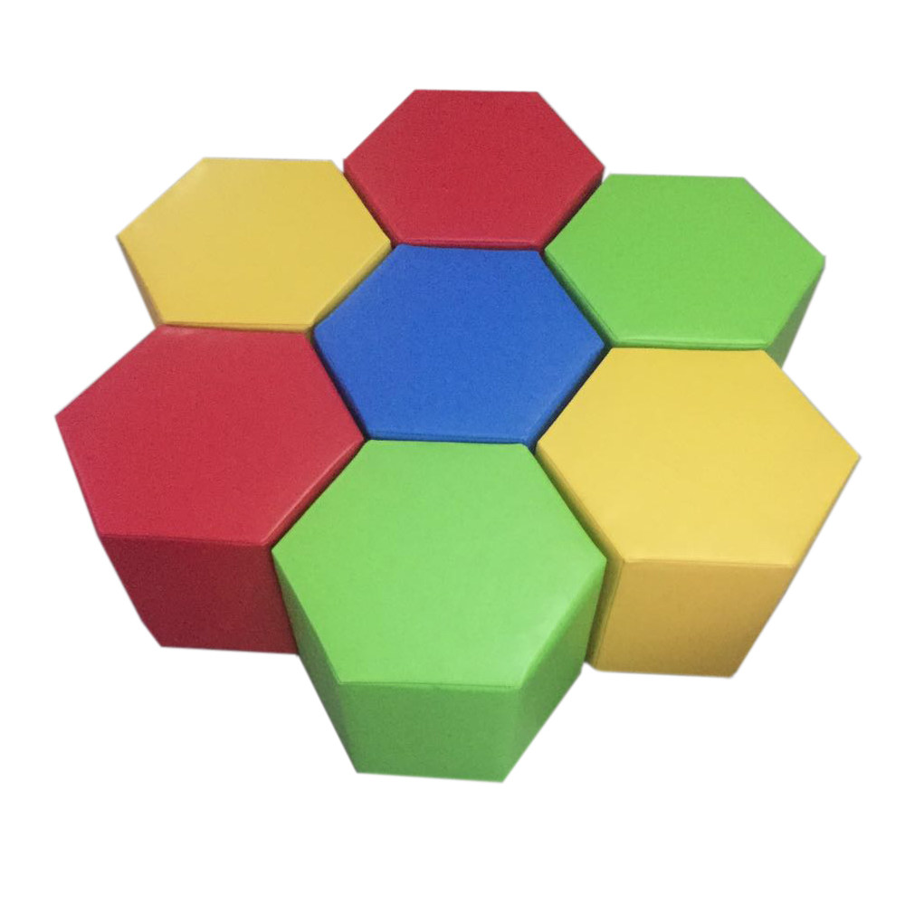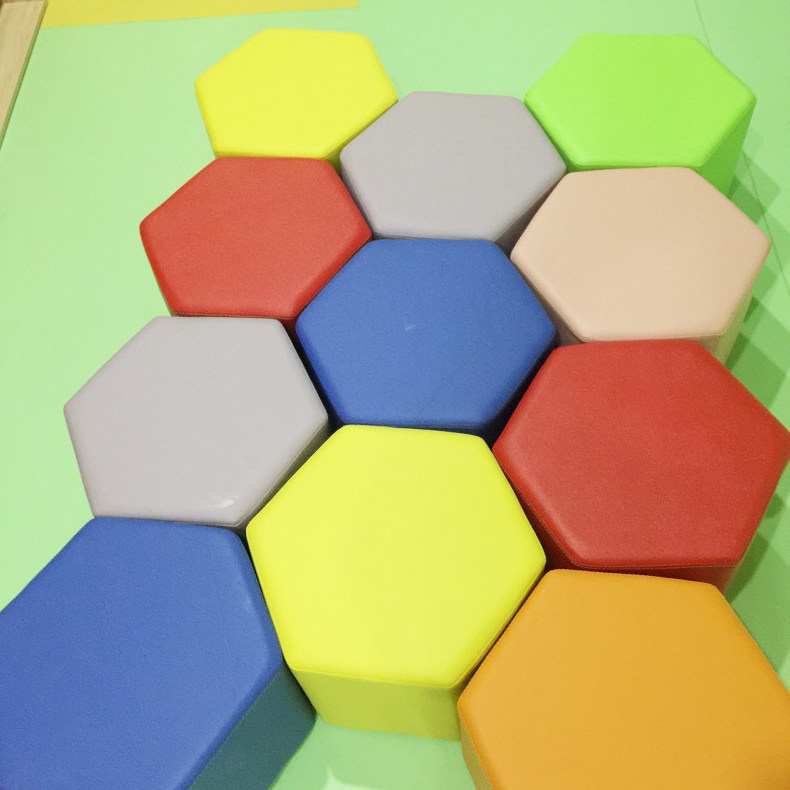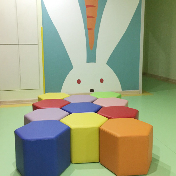 Hexagonal soft bag stool kindergarten early education mall children's special-shaped combination soft low stool seat PU small leather stool