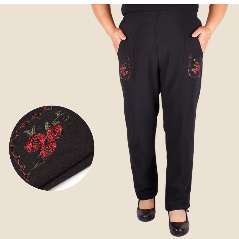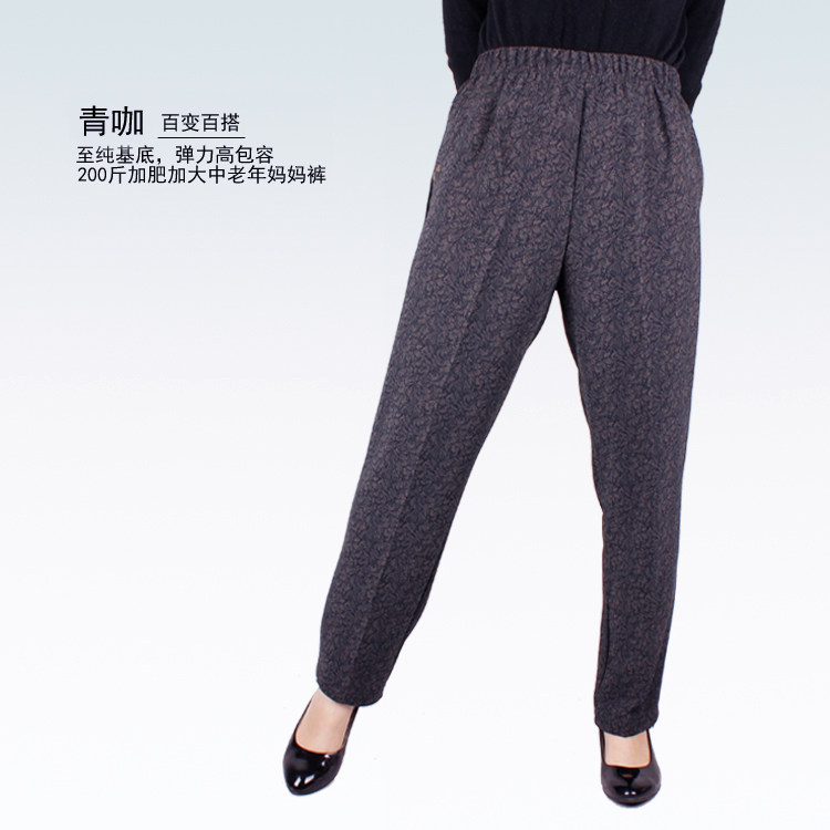 Plus size plus size middle-aged and elderly women's pants plus size mother's grandma's pants high waist women's trousers plus cashmere thick autumn and winter