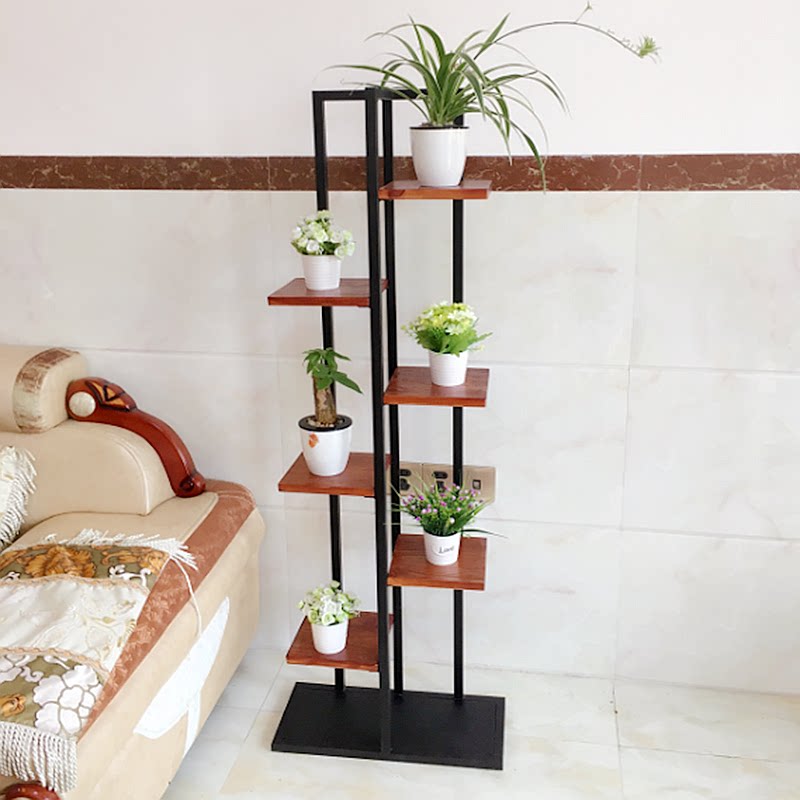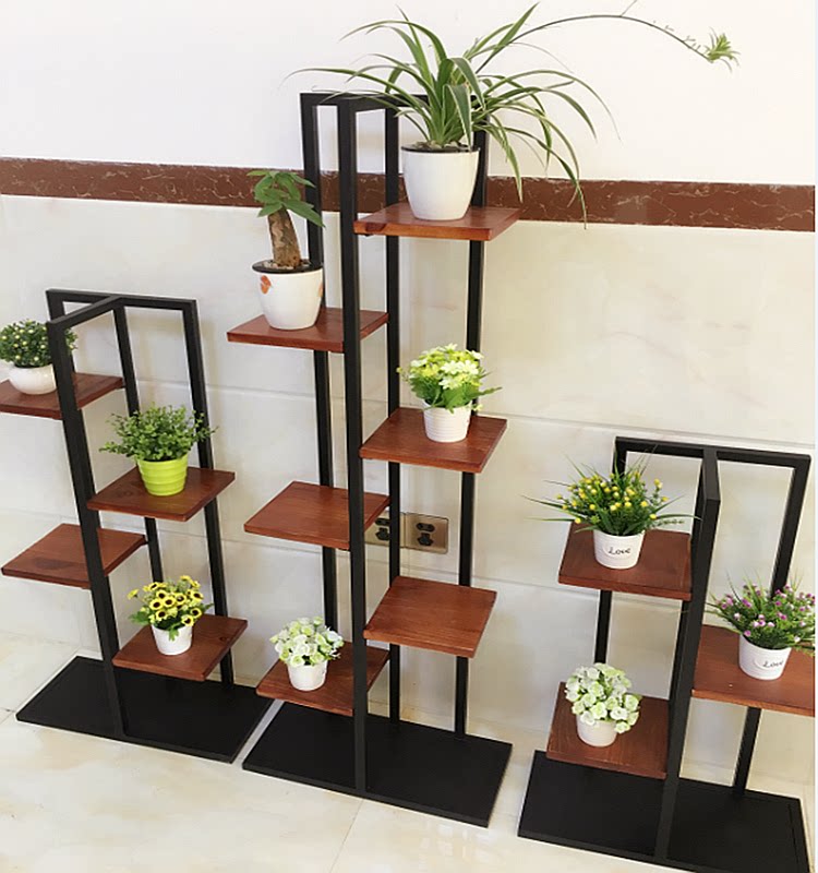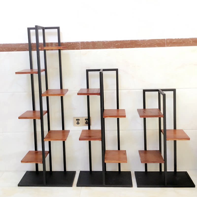American iron art retro flower stand solid wood floor multi-layer flower pot stand balcony living room succulent flower display stand