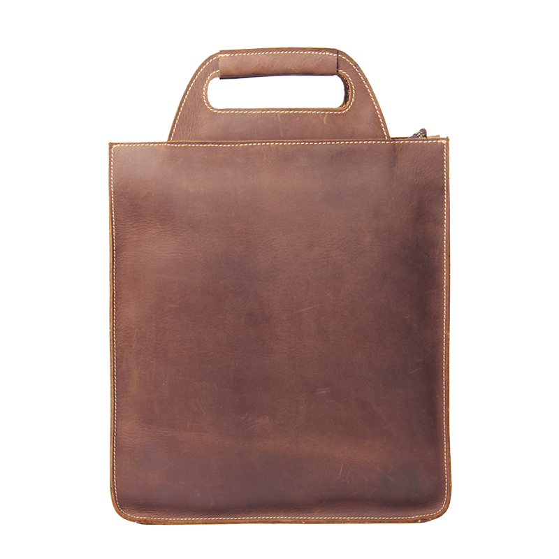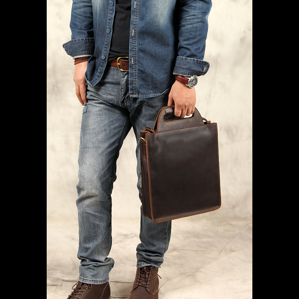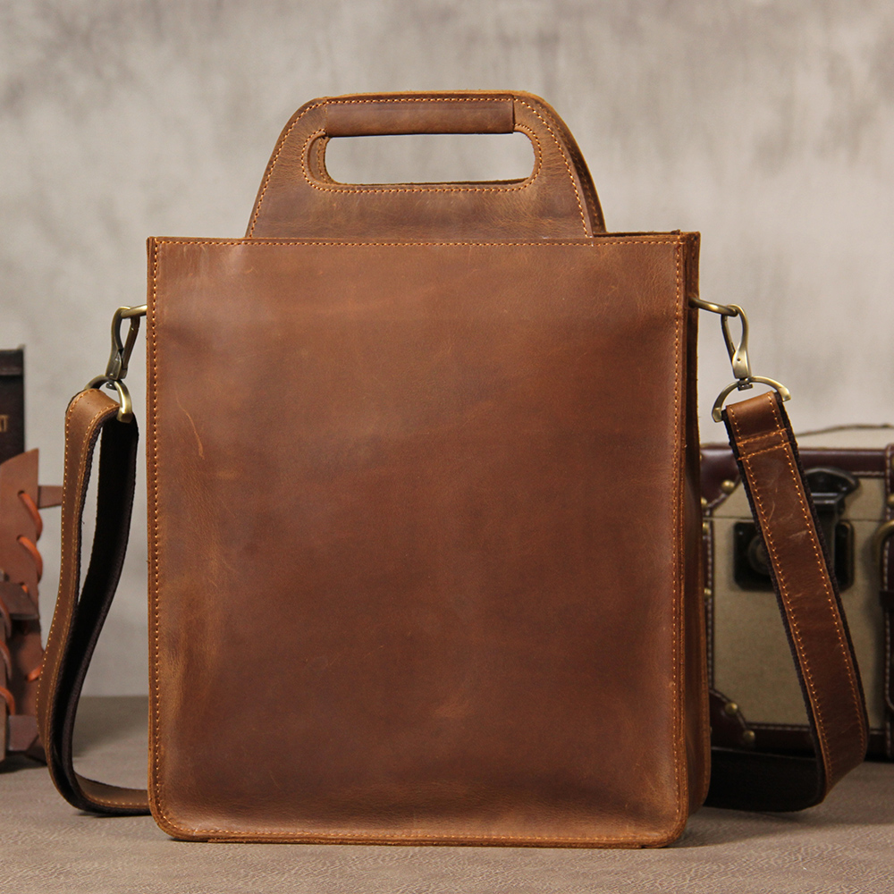 New Crazy Horse Leather Men's Bag Vertical Handbag European and American Retro One-shoulder Messenger Bag Simple Business Leather File Bag