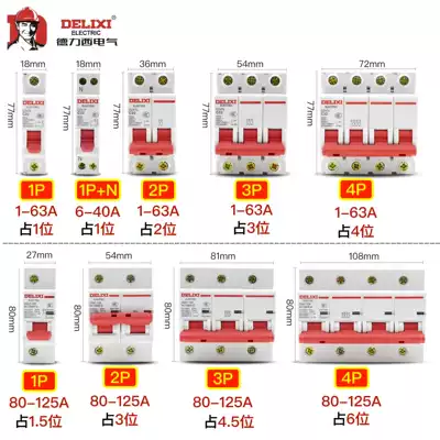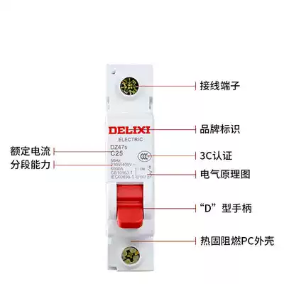 Delixi 1p Air Switch 2p household 32a63a three-phase 3p circuit breaker DZ47S 4p open 100A switch